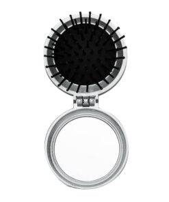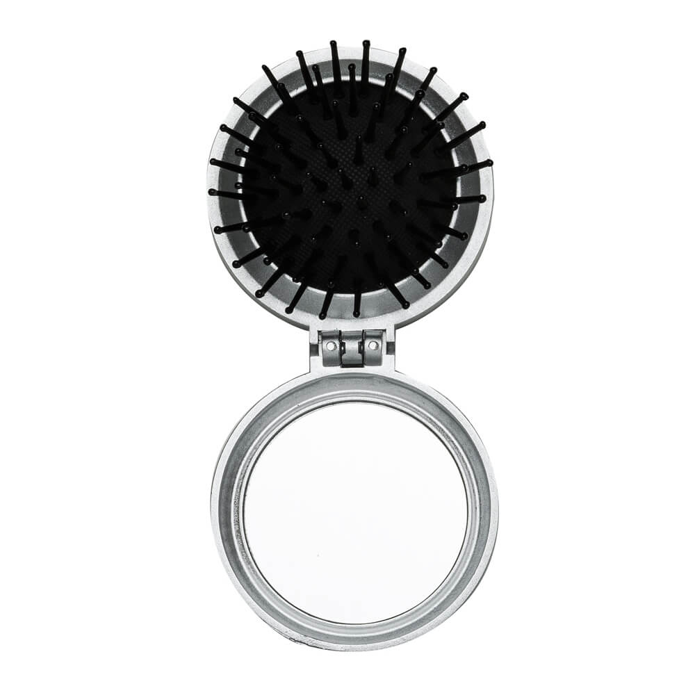 Descrição: Escova com espelho redonda em plástico resistente. Parte superior plana e parte inferior emborracha com relevo, estando aberta a peça basta empurrar a parte emborrachada(lado de fora) para poder utilizar a escova.