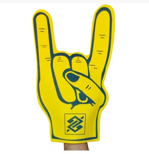 Mãos para eventos e festas. Impressão Off-Set Dublado no E.V.A com apoio de mão no verso